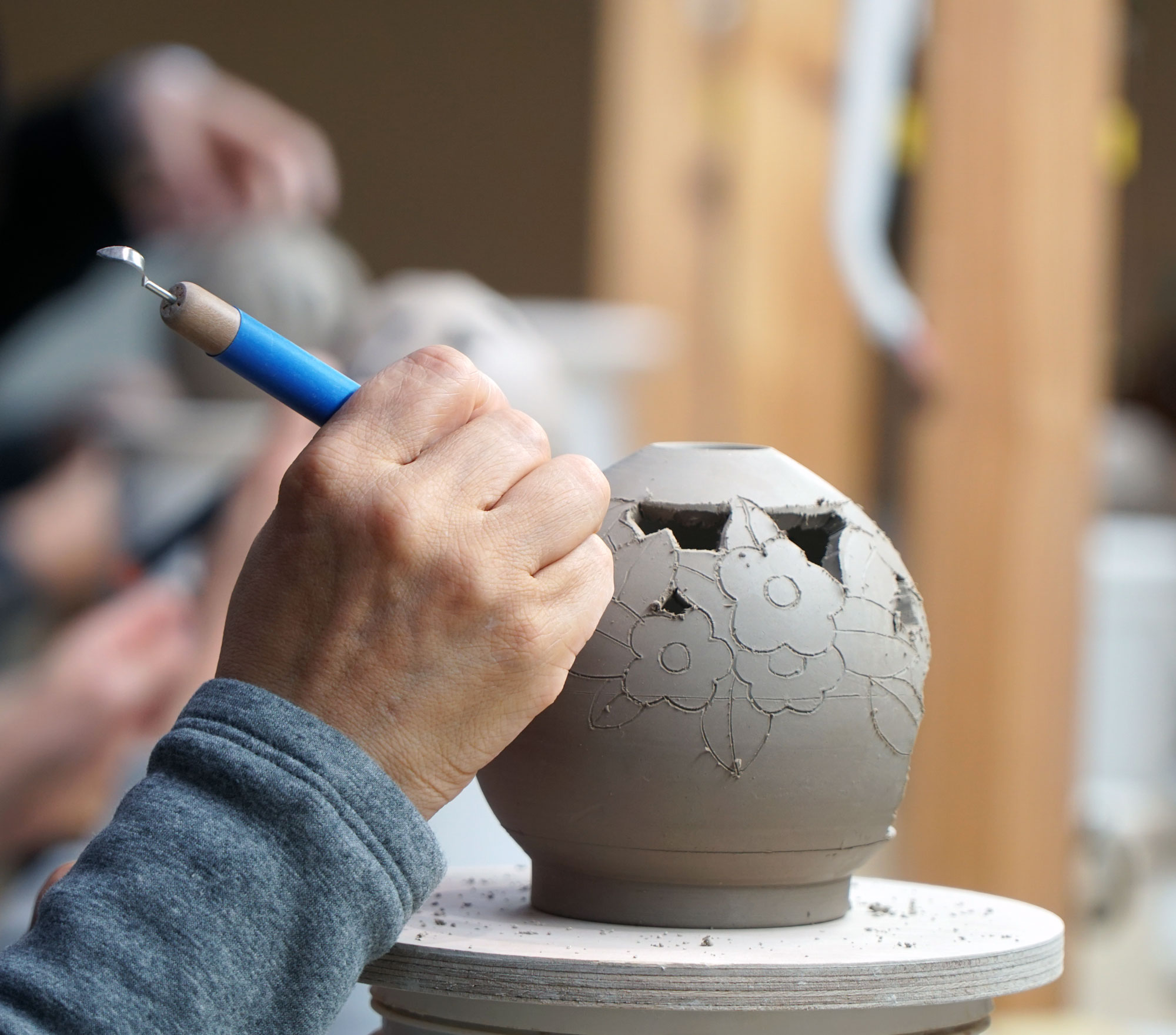 ** 이 프로그램은 백자 장식기법을 체험해보는 프로그램으로 김형준 도예가가 물레 성형한 여러가지 형태의 반건조된 기물이 랜덤으로 제공될 예정입니다.